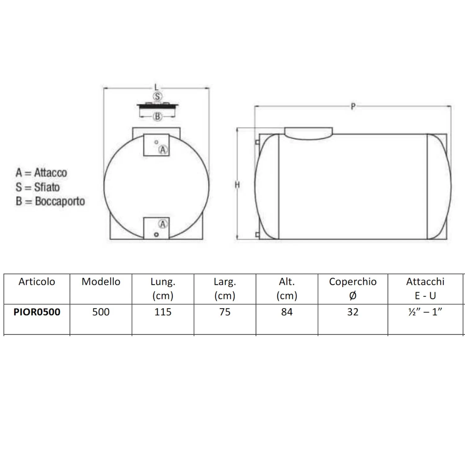 - Capacità:500 litri
