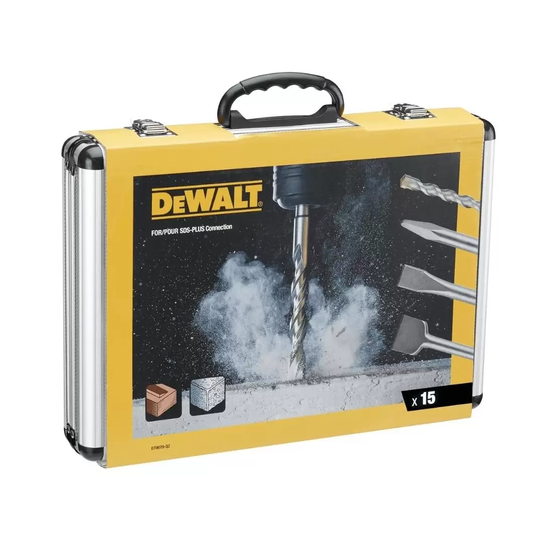 Kit DeWalt composto da 11 punte e 4 scalpelli SDS Plus in una pratica valigetta.