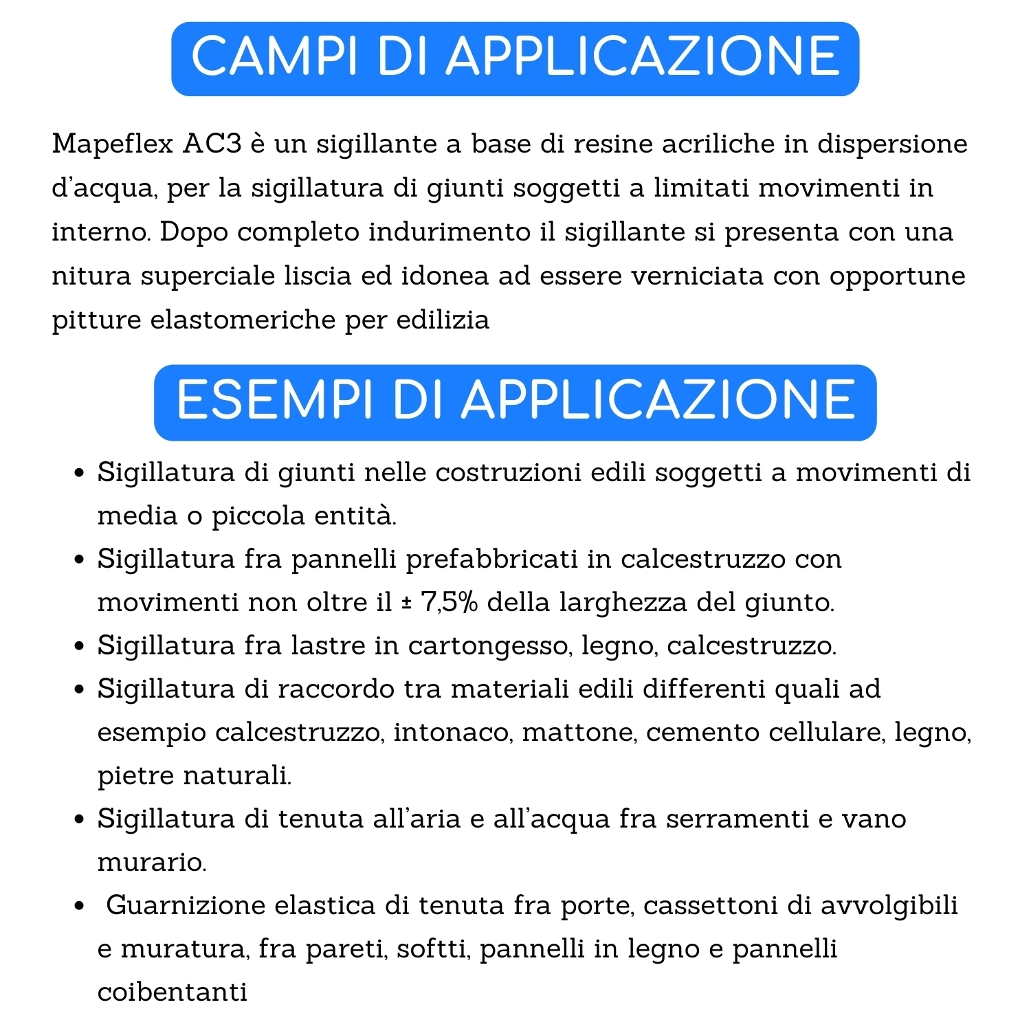 Silicone acrilico giunti dilatazione Mapeflex AC-P Mapei