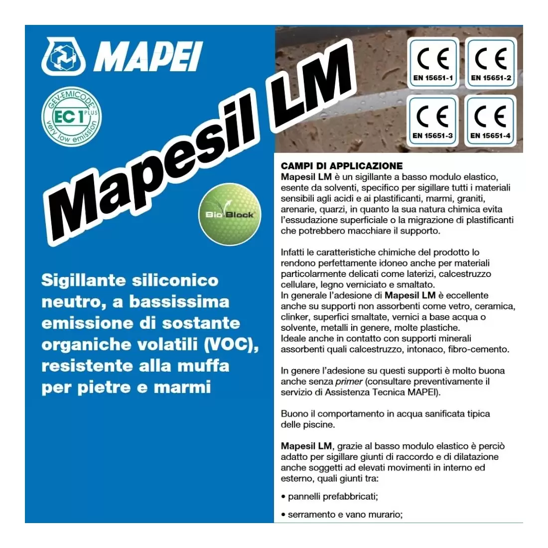 Silicone neutro puro inodore per pietra Mapesil LM Mapei