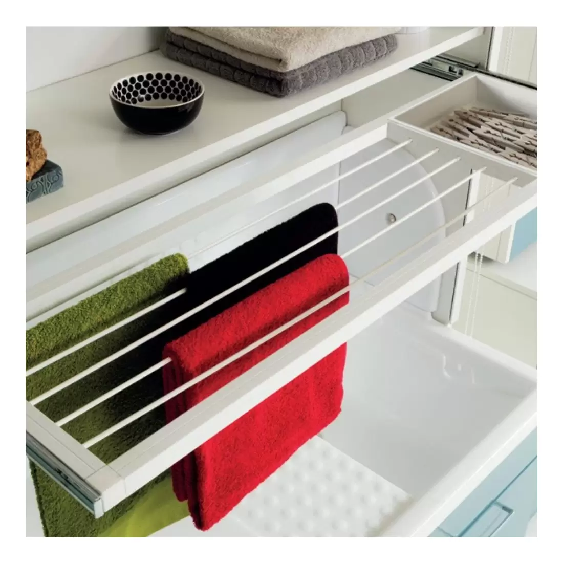 - Dotazione: stenditoio estraibile, fascione anti spruzzo in ABS metacrilato, kit di montaggio, tenda di chiusura in poliestere ignufugo