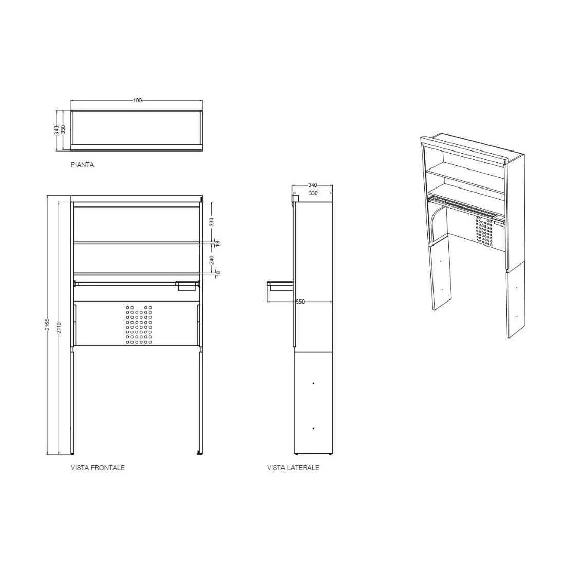 - Dimensioni: 110 x 32 x 217h cm