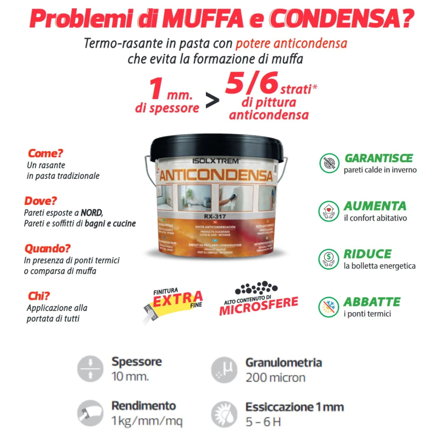 - 1 mm di spessore > 5/6 strati di pittura anticondensa