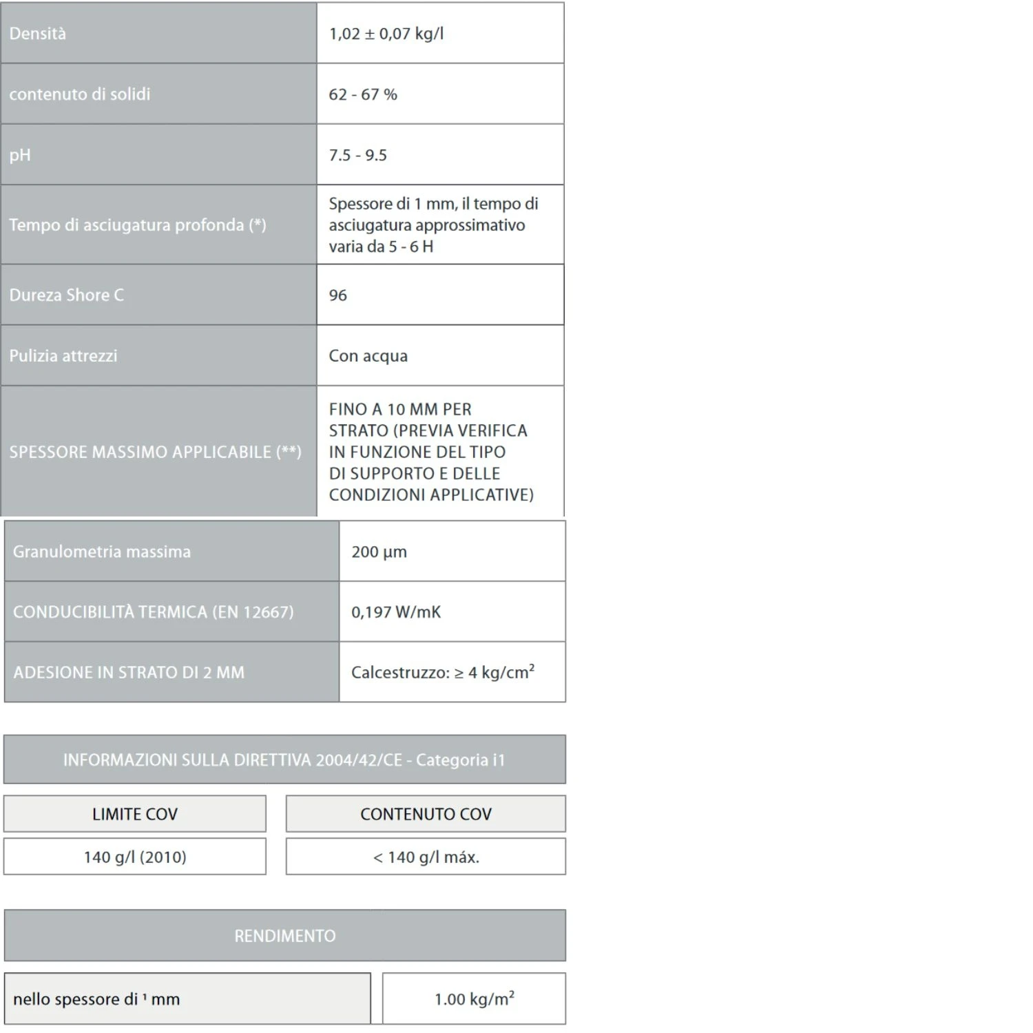 - Conducibilità termica secondo UNE 12664:2002: 0,197 W/m K