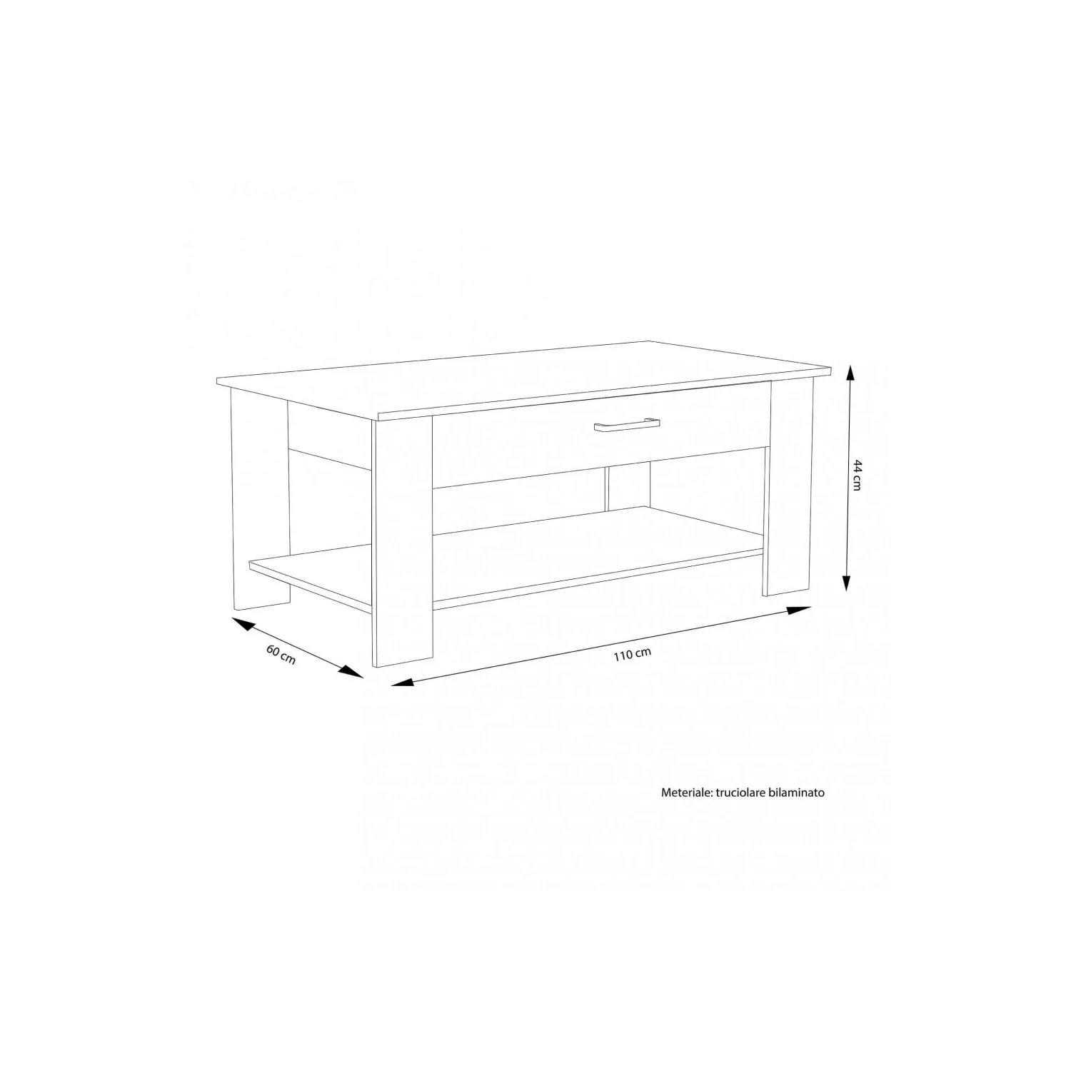 Tavolino in legno PINO CHIARO Dimensioni: cm 110 x 60 x 44 h