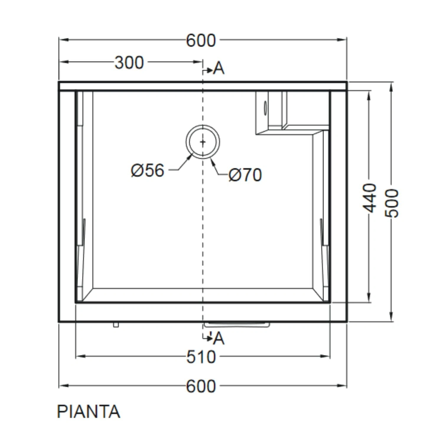 Vasca lavapanni in ABS per collezioni Jollywash e Swash. Dimensioni: 60×50 cm Bianco Lucido