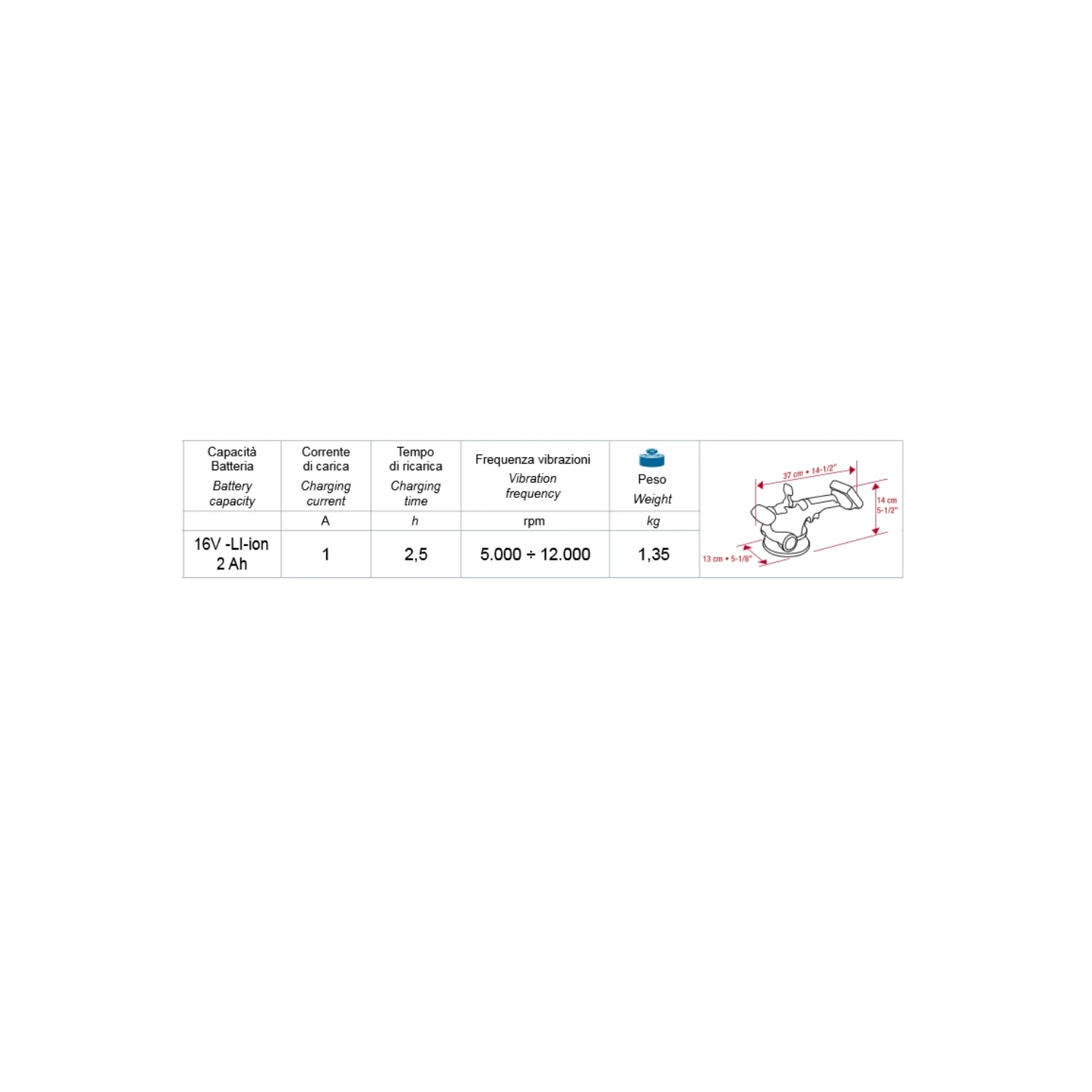 - Tempo di ricarica: 2,5 ore.